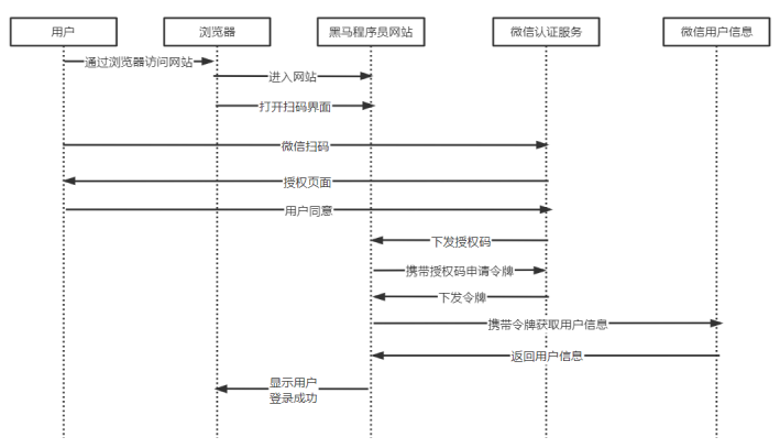 - 微信扫码登录其中的原理正是使用了第三方认证,如下图