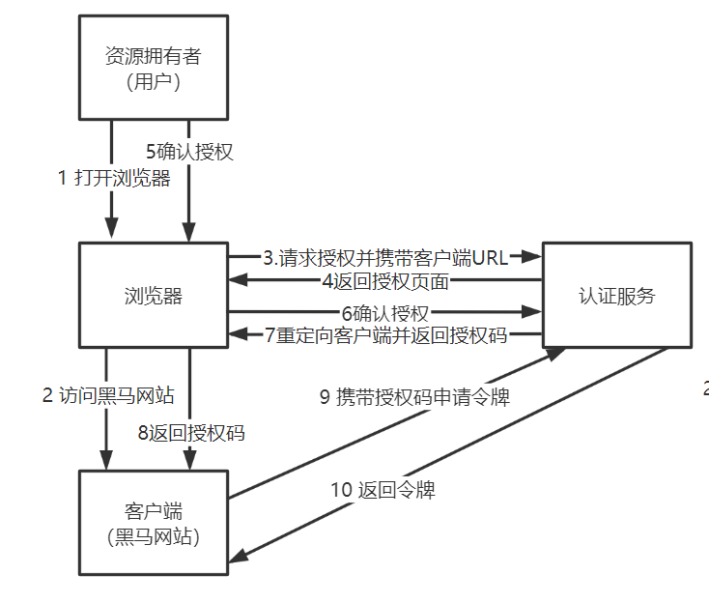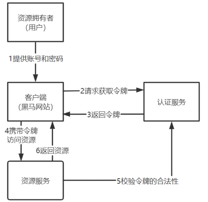 - 认证通过由认证服务想用户颁发令牌,相当于访问系统的通行证,用户拿着令牌去访问系统的资源