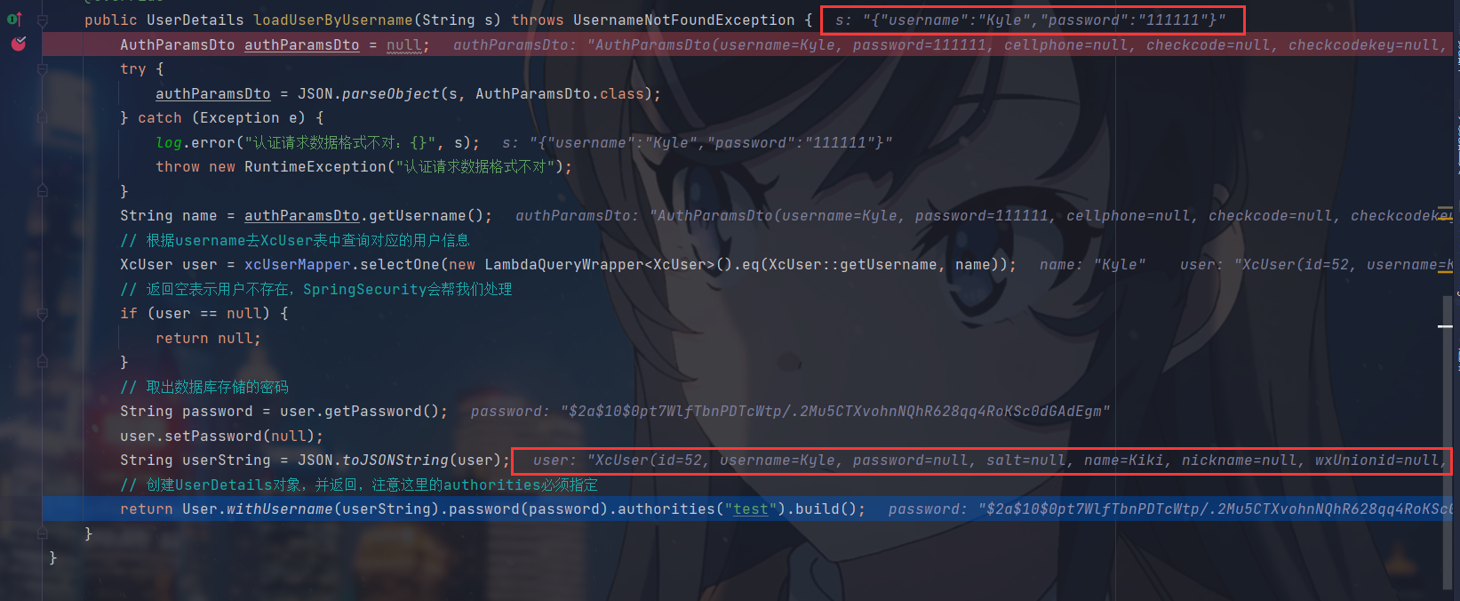 XcUser user = userMapper.selectOne(lambdaQueryWrapper);