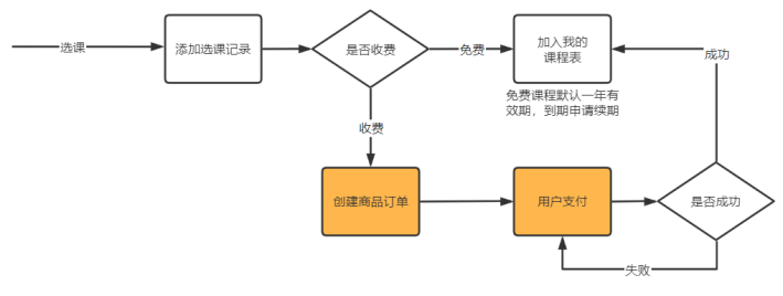 - 对于收费课程,学生需要下单且支付成功后,方可选课、学习