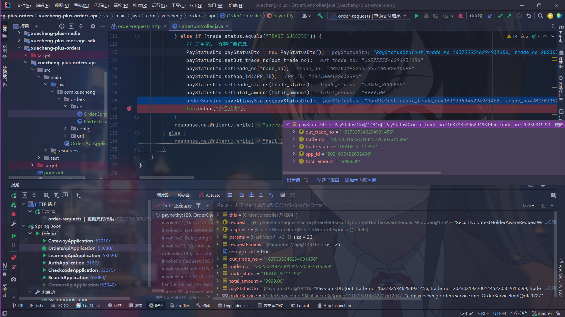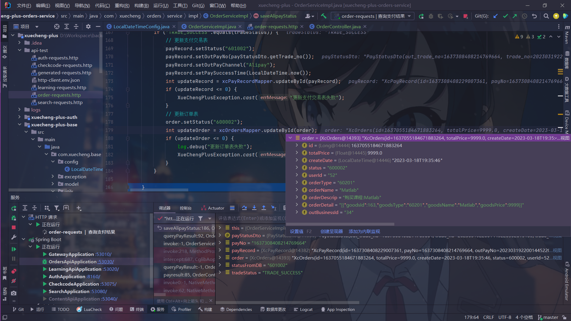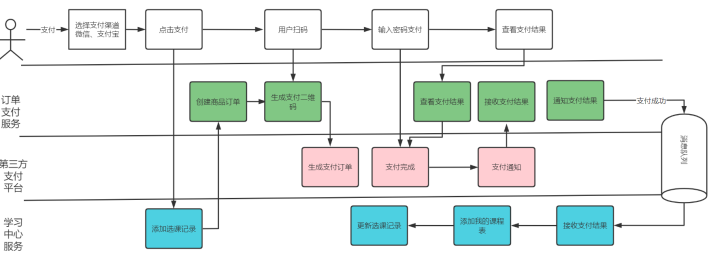 - 本模块实现了学生选课、下单支付、学习的整体流程