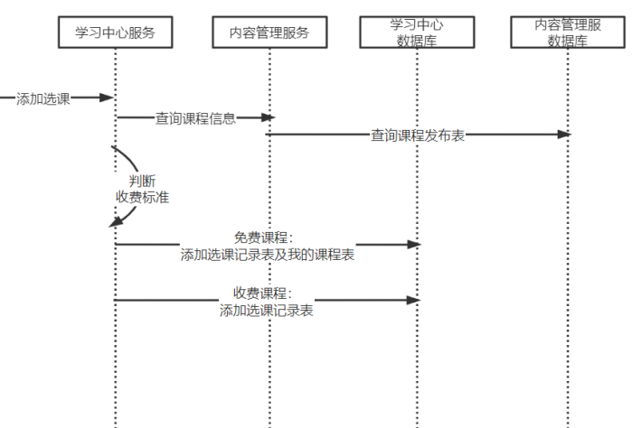 xc_choose_course(选课记录表)、xc_course_tables(我的课程表)、xc_learn_record(学习记录表) - 选课是将课程加入我的课程表的过程,根据选课业务流程进行详细分析,业务流程如下