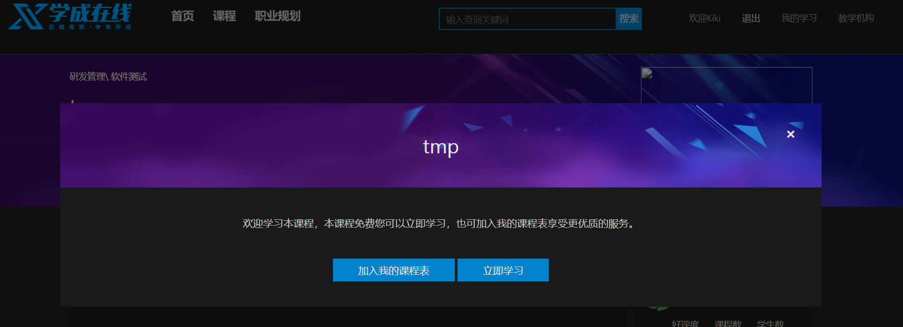 - 选课成功,用户可以在线学习,对于免费课程,无需选课即可在线学习