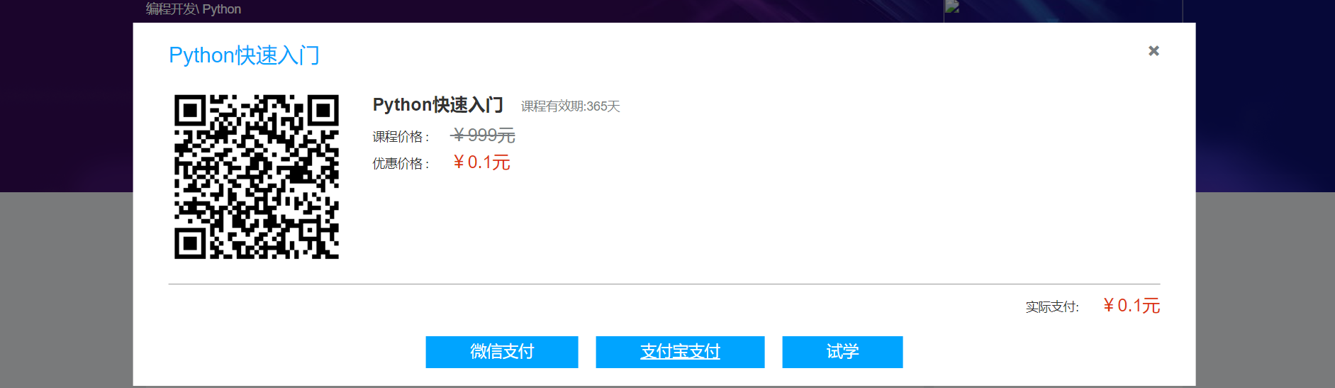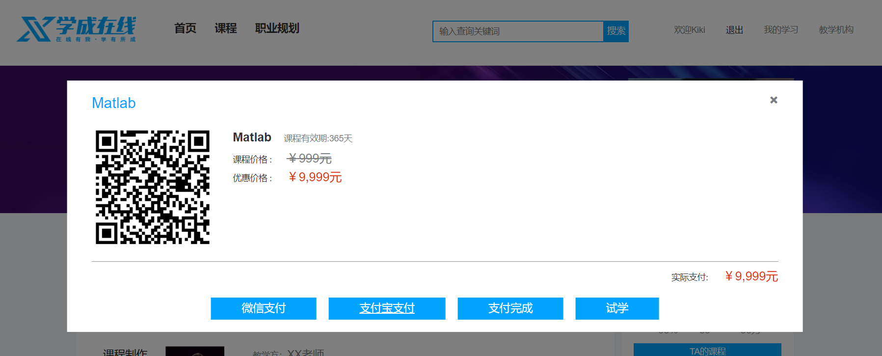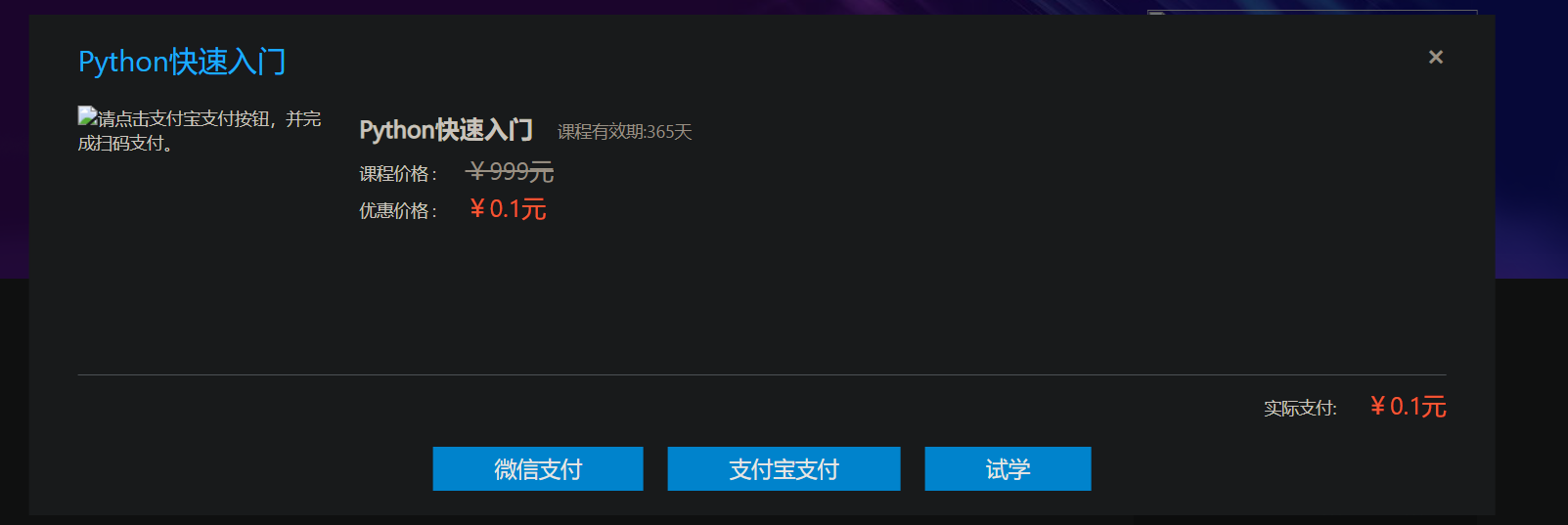 我的课程表,或者进入学习界面 - 课程收费时,引导去支付、试学