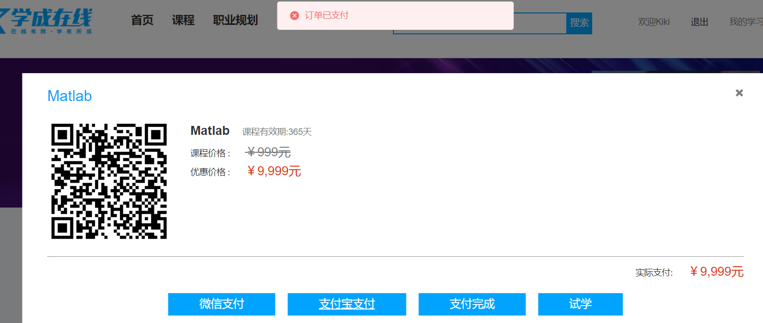 - 如果选的是收费课程,将信息存入选课信息表后,要经过下单、支付成功后,才可以存入我的课程表