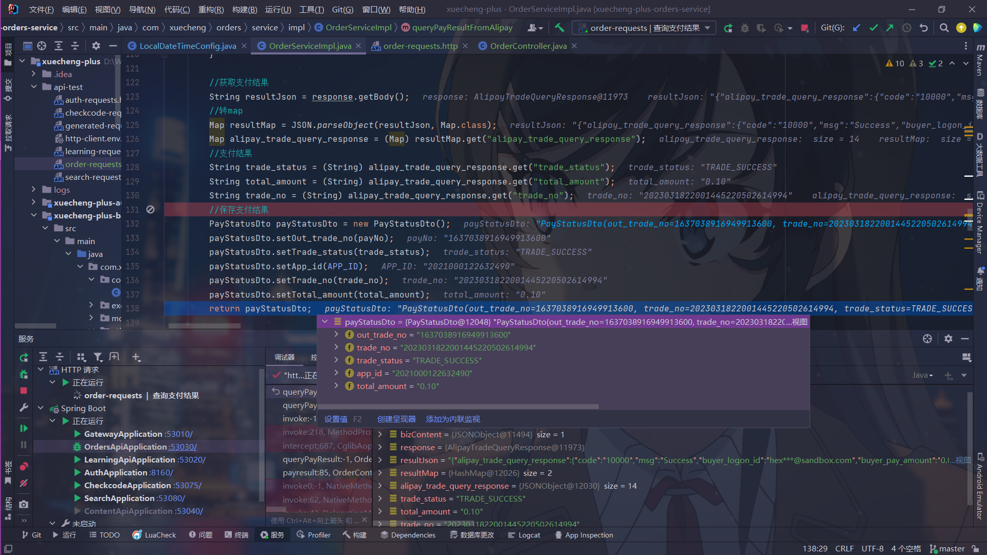 - 本项目与第三方支付平台对接完成支付操作
