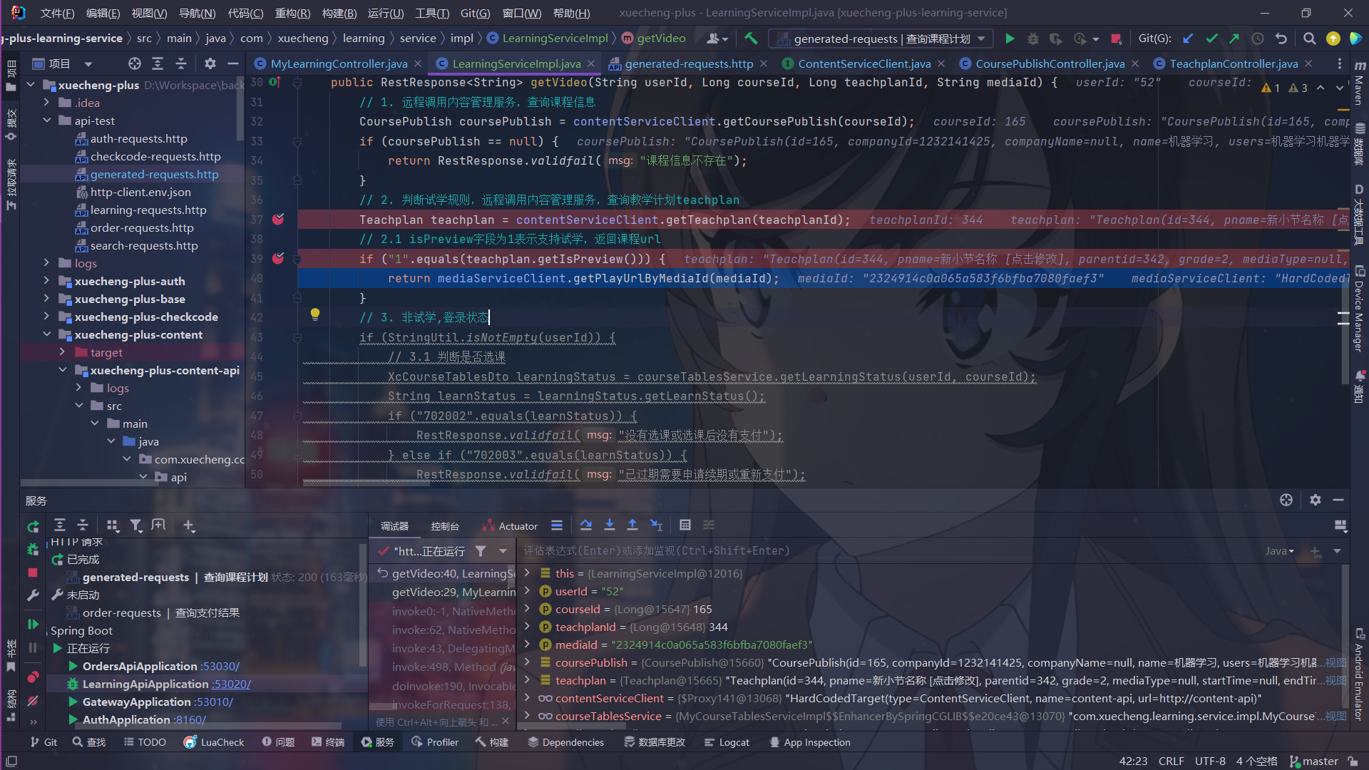 - 所以我们需要在learning-service中定义媒资管理FeignClient